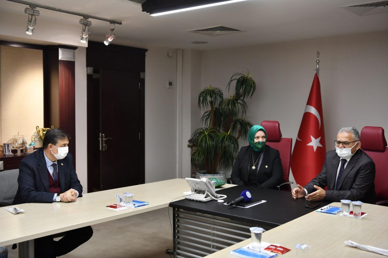 Belediye Başkanımız Halit TAŞYAPAN, Ak Parti İlçe Başkanı Mustafa ÇEÇEN ve yönetim kurulu üyeleri, Erdemli, Keşlik, Akköy, Soğanlı, Başköy ve Derbentbaşı mahalle muhtarlarımız ile birlikte Büyükşehir Belediye Başkanımız Dr. Memduh BÜYÜKKILIÇ’ı ziyaret etti. Ziyarete bir süre sonra Kayseri Ak Parti Milletvekilimiz Hülya NERGİS’de katıldı.