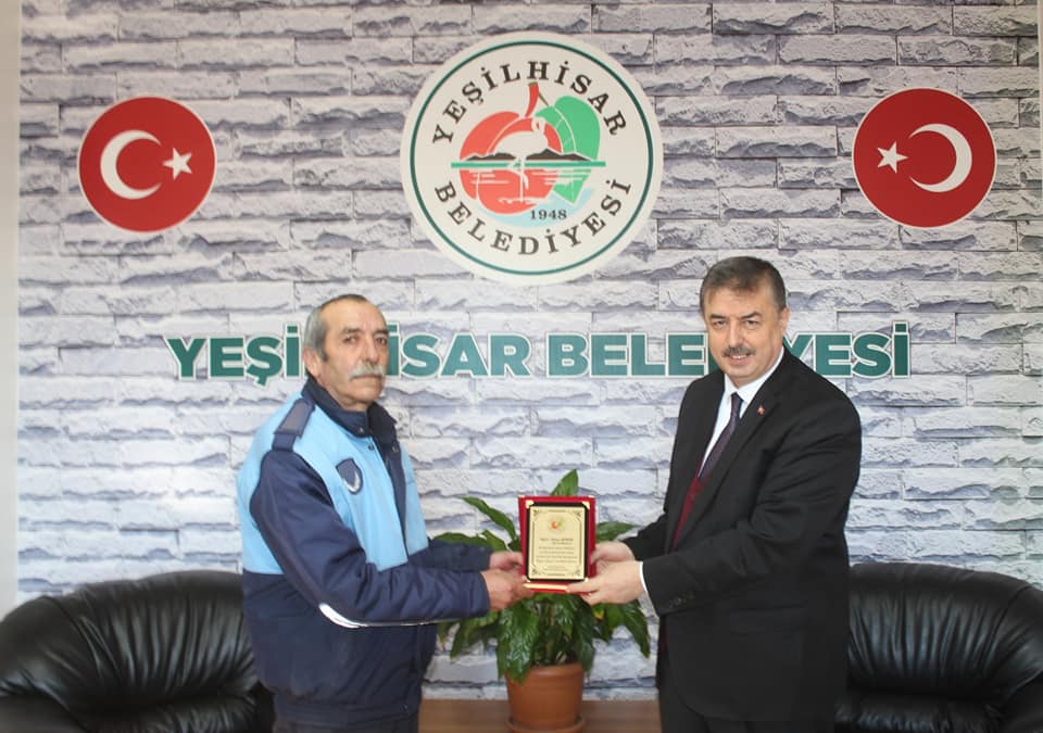 Belediye Başkanımız Halit TAŞYAPAN, emekli olan Zabıta Memuru Yakup KENDİR’e, teşekkür plaketi takdim etti.