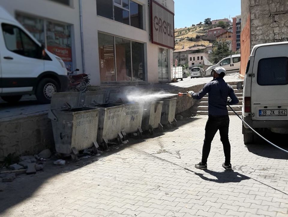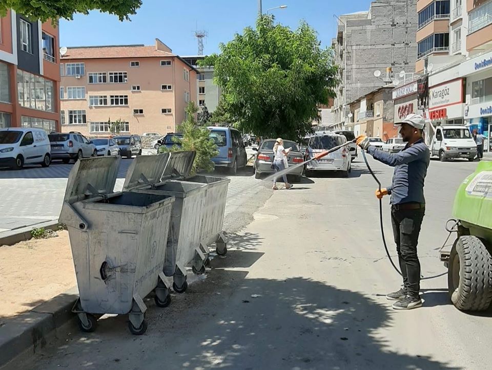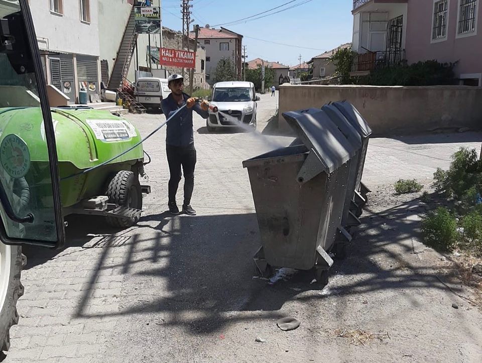Belediyemizce İlçemizdeki çöp konteynerlerini yıkayarak bakteri öldürücü ve koku giderici antibakteriyel ilaçlarla temizlik çalışmaları devam ediyor.