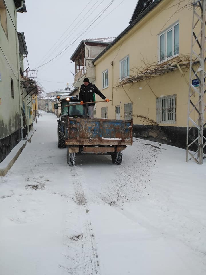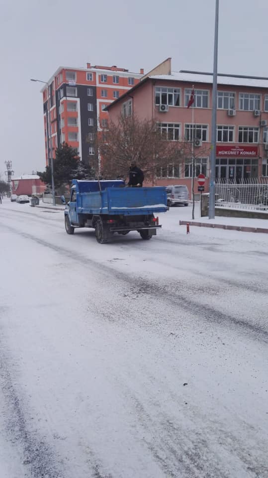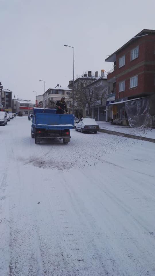 İlçemizde gece başlayan ve sabaha karşı etkisini artıran kar yağışı nedeni ile ekiplerimiz günün ilk saatlerinden itibaren tuzlama ve yol temizleme çalışmalarını sürdürüyor.